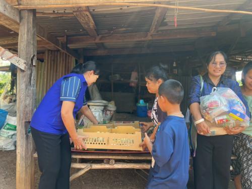 นางสาวนงลักษณ์ อยู่พุ่ม นายอำเภอท่าหลวง และนางสาวยุพา ยอดสุรินทร์ พร้อมด้วยเจ้าหน้าที่สำนักงานพัฒนาชุมชนอำเภอท่าหลวง กำนัน ผู้ใหญ่บ้าน และผู้แทนองค์กรปกครองส่วนท้องถิ่น ลงพื้นที่มอบถุงยังชีพ พร้อมลูกไก่พันธุ์เนื้อ จำนวน 400 ตัว และอาหารไก่ ให้แก่ครัวเรือนตกเกณฑ์ตัวชี้วัดข้อมูลความจำเป็นพื้นฐาน (จปฐ.) และครัวเรือนที่เปราะบาง